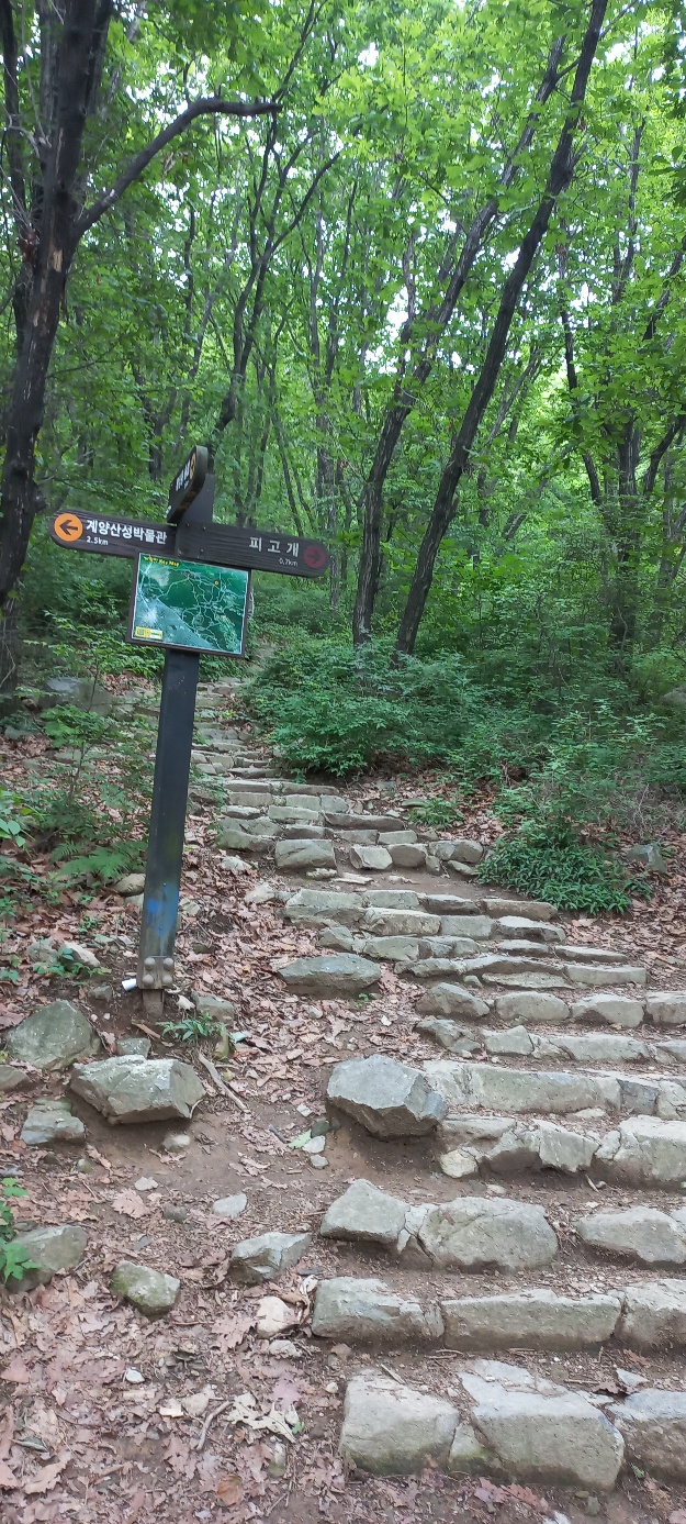 오늘은 계양산 4번출구 - 계양산 주차장 및 관리사무소 - 하느재쉼터 - 목상동 솔밭방향 계단 - 계양산 정상 - 계양산성 박물관으로 내려온다.