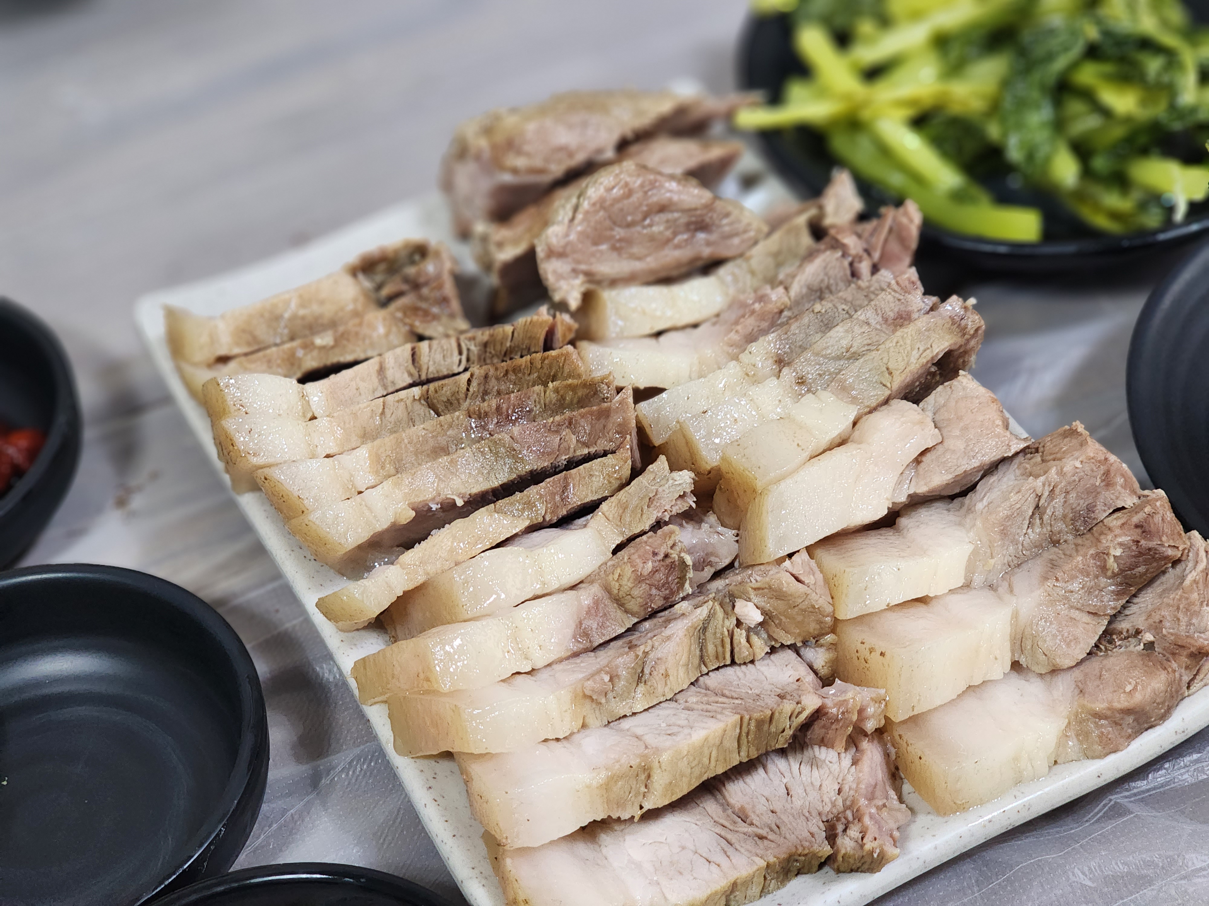 진짜 촉촉하고 비계도 쫀득한 수육이 나오는데요! 명태회무침 올려서 먹으면 상투스 울립니당.. 꼭 2인당 1개로 주문해주시길..