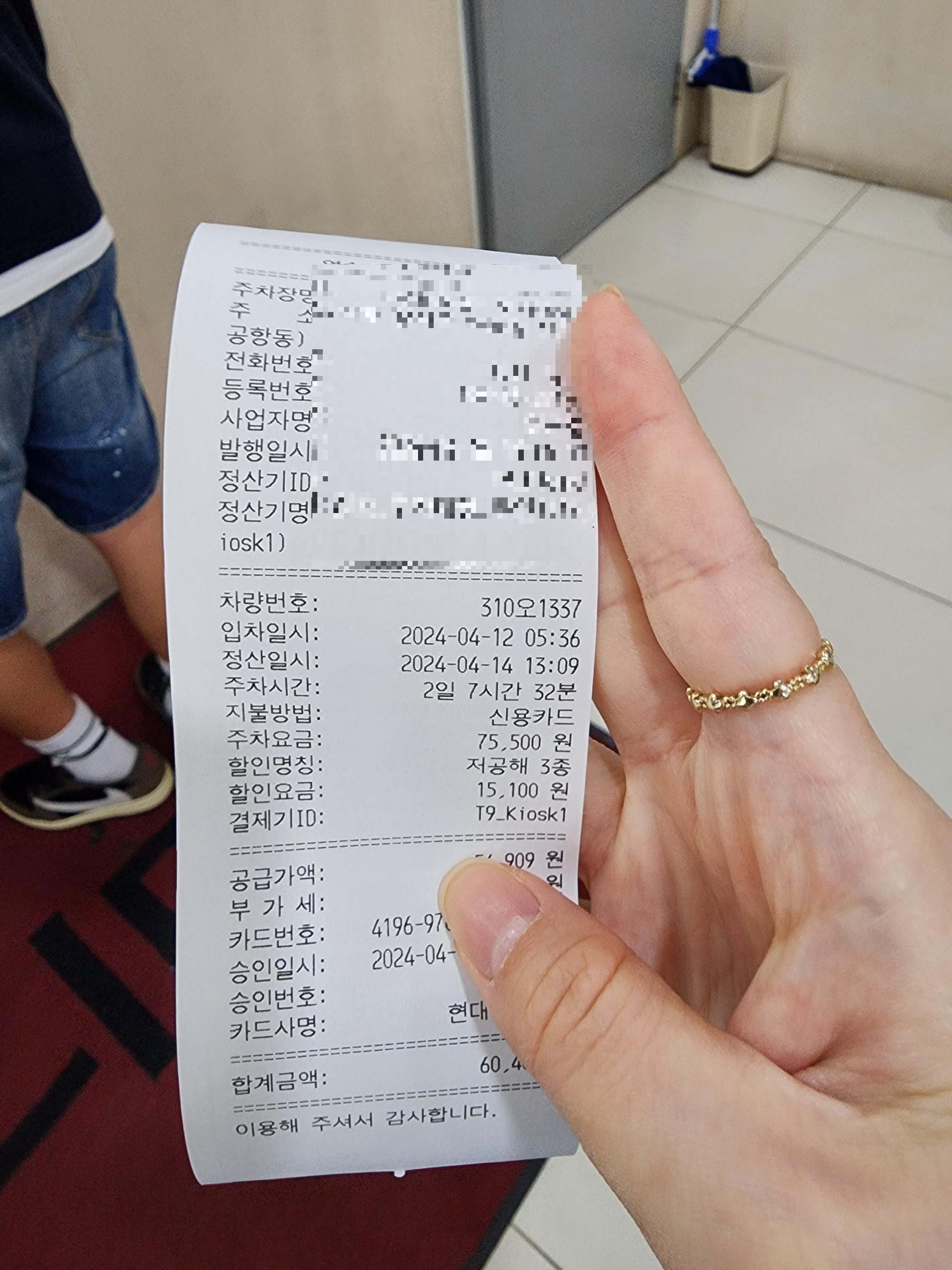 주차는 따로 결제해야 합니다! 주차비는 거의 3일이었는데 6만원 나왔네요. 이정도면 선방이에요. 2번타는 택시비보단 저렴해요.. 저공해차량 30% 할인은 따로 입력하지 않아도 자동 적용되어서 나왔습니다!