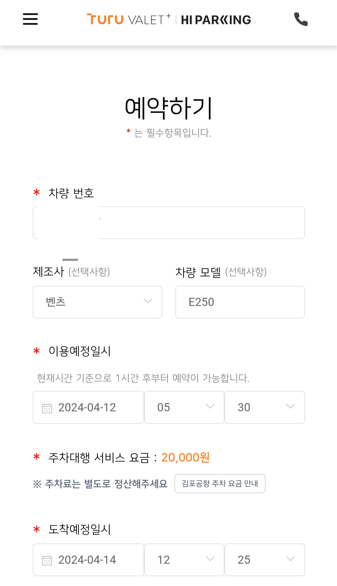 발렛 맡기고 출발할 때