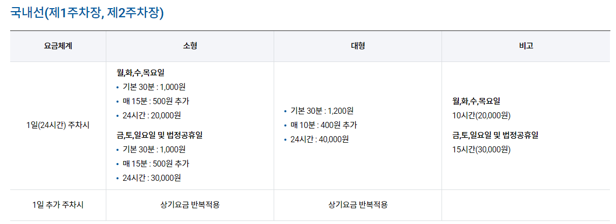 김포공항 주차비 가격