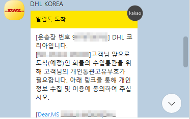 어쩐지 해외배송인데 개인고유통관부호를 입력안해서 의문이었거든요. dhl이 보내주는 카톡에서 입력하면 되더라고요.