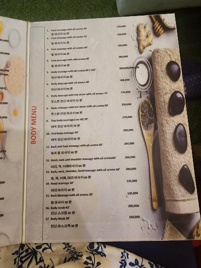로컬 마사지샵과 한인 마사지샵으로 나누어집니다. 로컬은 저렴한대신 한국인이 원하는 서비스 수준까지는 미치지 못할 수 있고요. 한인 마사지샵은 로컬에 비해 2배이상 비싼 대신에 좀 더 위생적이고 한국말이 통하는 등의 서비스를 기대할 수 있어요. 90분 기준으로 로컬은 20~30만동, 한인샵은 50~60만동 이니까요... 가격 차이가 꽤 크게 느껴지죠?! 그리고 한인샵은 사실 한국과의 금액차이가 크지 않을 수 있어요. 저도 로컬 2개, 한인샵 1개로 다녀왔는데 로컬은 꼭 한번 경험해보시길 추천드려요~!
