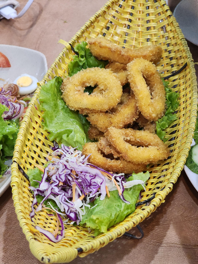 갑오징어 튀김인데 누구나 아는 그맛이지만 맛나다. 맛조개 구이 사진이 이거밖에 없어서 사용합니다.. 소스 제조해서 먹어야되요. 그리고 다른 분이 강추해서 시킨 해물볶음면인데 진짜 강추할만해요! 약간의 느끼함을 이 매콤한 볶음면이 잡아주더라고요. 동호콴은 한국인이라면 모두 만족할만한 식당이에요!
