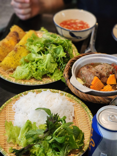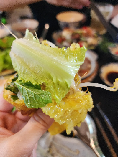 사진에서만 등장하는 돼지고기 튀김... 베트남 상추는 엄청 어린 잎이라 달달하니 맛나더라고요. 깔끔하고 인스타 감성 돋는 레스토랑에서 꼭 먹어봐야할 베트남 메뉴를 즐길 수 있으니까요. 저처럼 향신료 향에 예민하신 분들에게도 추천하는 곳입니다!