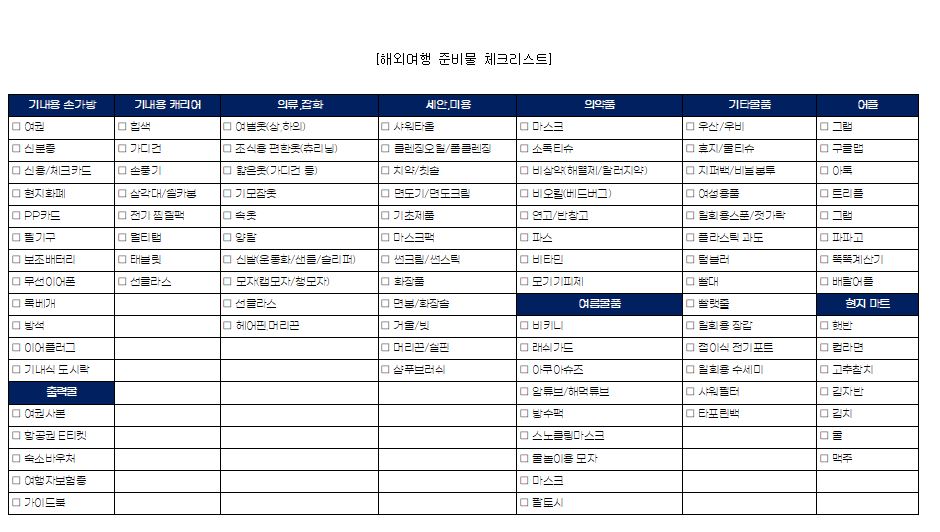 제가 직접 나트랑 다녀와서 아쉬웠던 점을 보강해서 새로 체크리스트를 작성해봤어요. 저도 다음 여행 때 활용하려고 만들었는데 공유해봅니다.