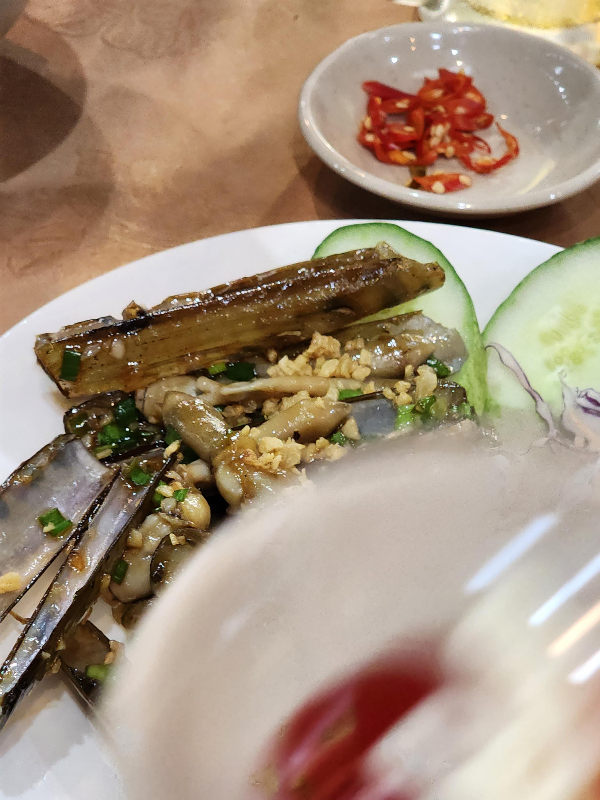 갑오징어튀김/볶음면/맛조개구이 인데요. 셋다 꼭 시켜야한다는 후기 보고 시켰는데 맞아요. 다 시켜야해요... 그리고 2인이서 이렇게 먹었는데 다 먹고 나왔어요!!! 모래 씹히는 것도 없고 다 깔끔한 맛. 게다가 친절하기 까지! 동호콴 나트랑오면 한번쯤 코스에 포함시켜보세요!