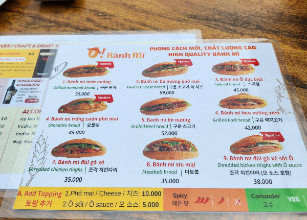 아쉬운 점은 반쎄오가 유명한 집인데 푸드코트 같은 거였던지 반쎄오 파는 곳이 안열림... 저희는 포멍-국물쌀국수 메뉴와 오반미-구운 소고기 치즈로! 근데 쌀국수가 영 밍밍했고 반미는 괜찮았어요..