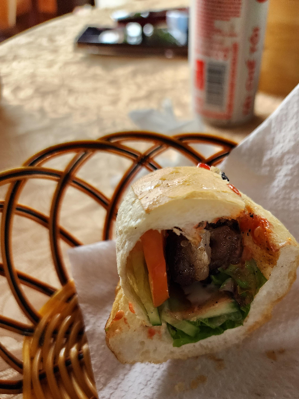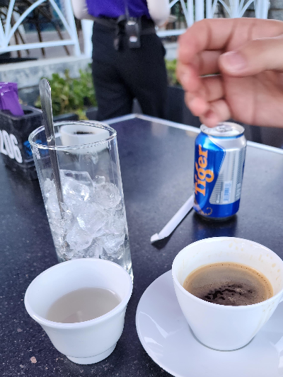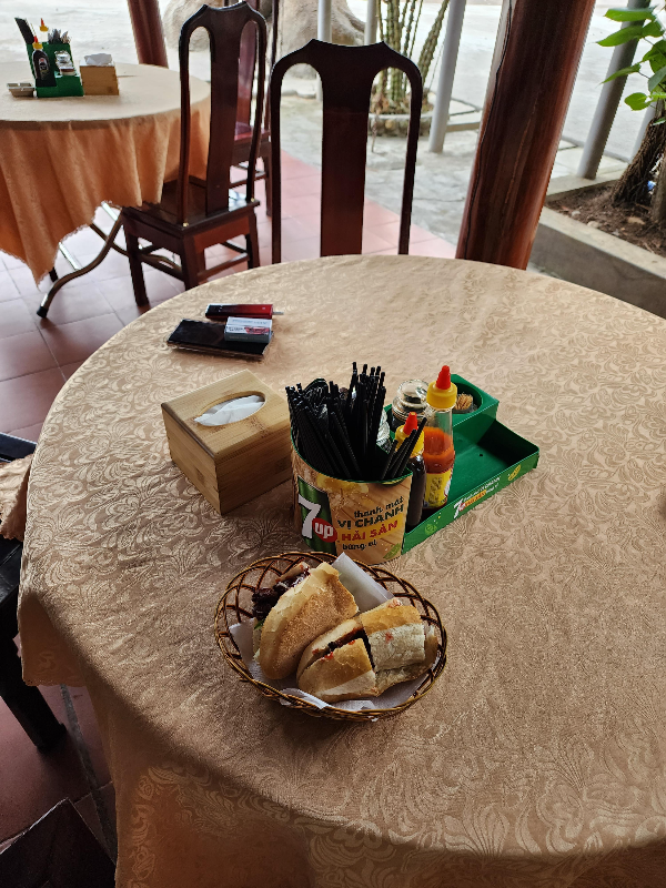 조식 휴게소는 반미/쌀국수/커피를 마실 수 있는 간단한 곳에 들렸어요. 여기 화장실도 생각보다 깨끗하니까 꼭 이용하세요. 달랏 투어 모든 코스가 화장실이 편한 건 아니어서 들어갔다가 그냥 나온 곳도 여러 곳 있었거든요.. 여긴 깨끗했어요. 남편은 반미(5만동) 먹었고 저는 아이스 아메리카노도 한 잔 했어요.
