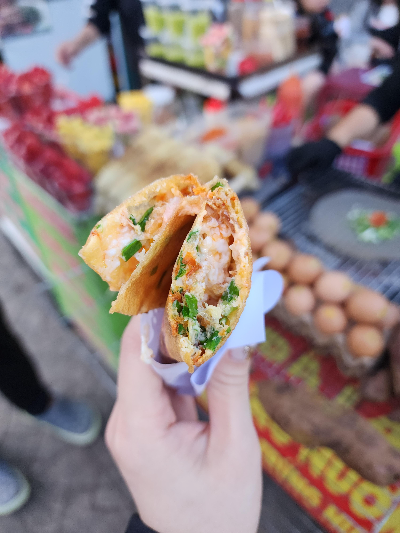 남편이 나혼자산다 달랏편 보고 꼭 먹어보고 싶다했던 피자! 라이스페이퍼에 토핑 올려 구워주는 건데요. 접어먹는 피자라 먹기도 편하고 간단한 간식으로 좋았던 것 같아요..... 물론 저는 한입먹고 안먹음.