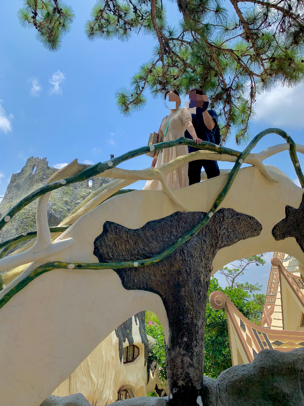원래 이정도 돌면 점심 먹으러 가는 것 같은데 우리 팀은 아침도 먹었겠다 아무도 배가 안고프다고 해서 다른 곳 한 번 더 들르기로 했어요. 그게 바로 크레이지하우스! 베트남의 가우디로 불리는 건축가가 만들었다고 하는데 정말 특이하더라고요. 여기 입장료는 투어비에 포함되어 있어요! 꽤 높은 곡선의 계단을 왔다갔다 해야해서 사실 무서웠어요... (그래도 유료 코스라 화장실 엄청 깨끗했어요. 1명 나가면 바로 청소하시더라고요.)