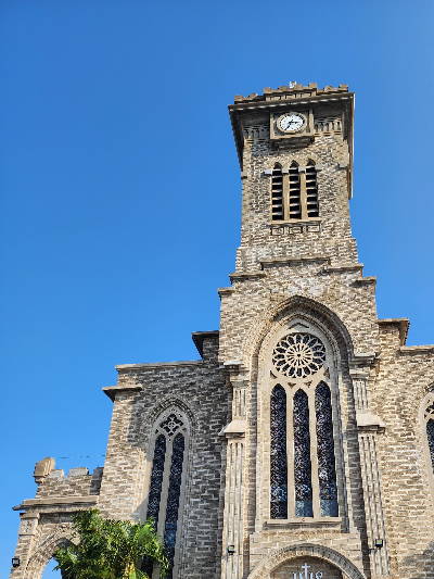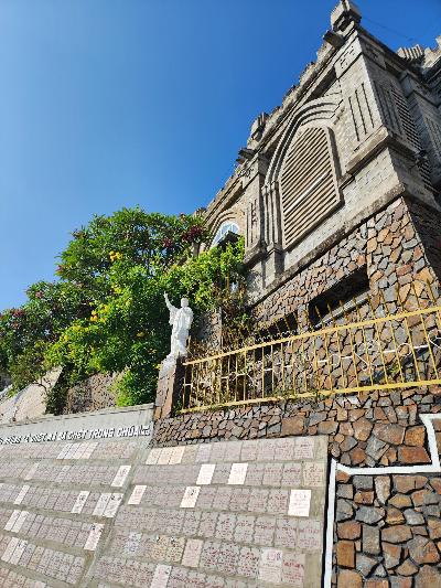 나트랑 대성당 사진 꿀팁) 조각상들 밑에 성인 이름이 적혀있는데 MARCO 성인 밑 벤치에서 찍으면 예쁜 구도가 나옵니다!
