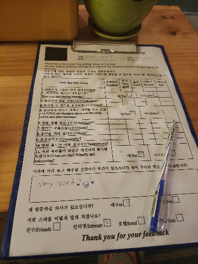 오늘 혹사당한 발.. 족욕부터 하고요. 쪼리를 내어주셨네요. 60분에 37만동? 정도 했던것 같아요. 아로마 오일은 제가 좋아하는 백단향으로 받고 왔는데 바로바로 바르자마자 닦아내 주셔서 트러블도 안날것같이 안심. 시원하고 제 의견도 자주 물어봐주셔서 좋았어요. 남편은 어제 받은 베나자의 라운지스파가 더 좋았다고 했는데, 사실 가격은 둘 다 비슷! ㅎㅎ