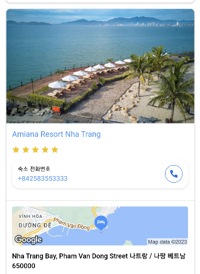 제가 묵었던 아미아나리조트에 전화를 걸려면... 전화번호가 아래와 같이 +842583553333 으로 나옵니다.