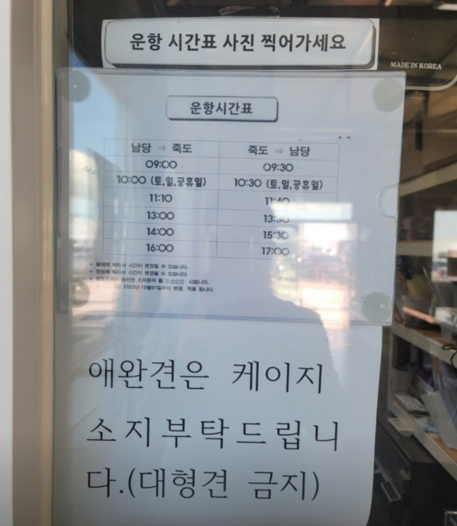 예를들면, 13:00 죽도 들어가는 시간인데 우리가 가니 12시에 배가 한 척 더 운항 하더라고요!
