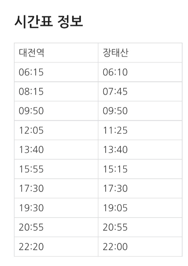 대전역 동광장에서 20번 버스 타기(시간표) 대전역에서 장태산 가는 20번 버스는 09:50, 그다음은 12:05.