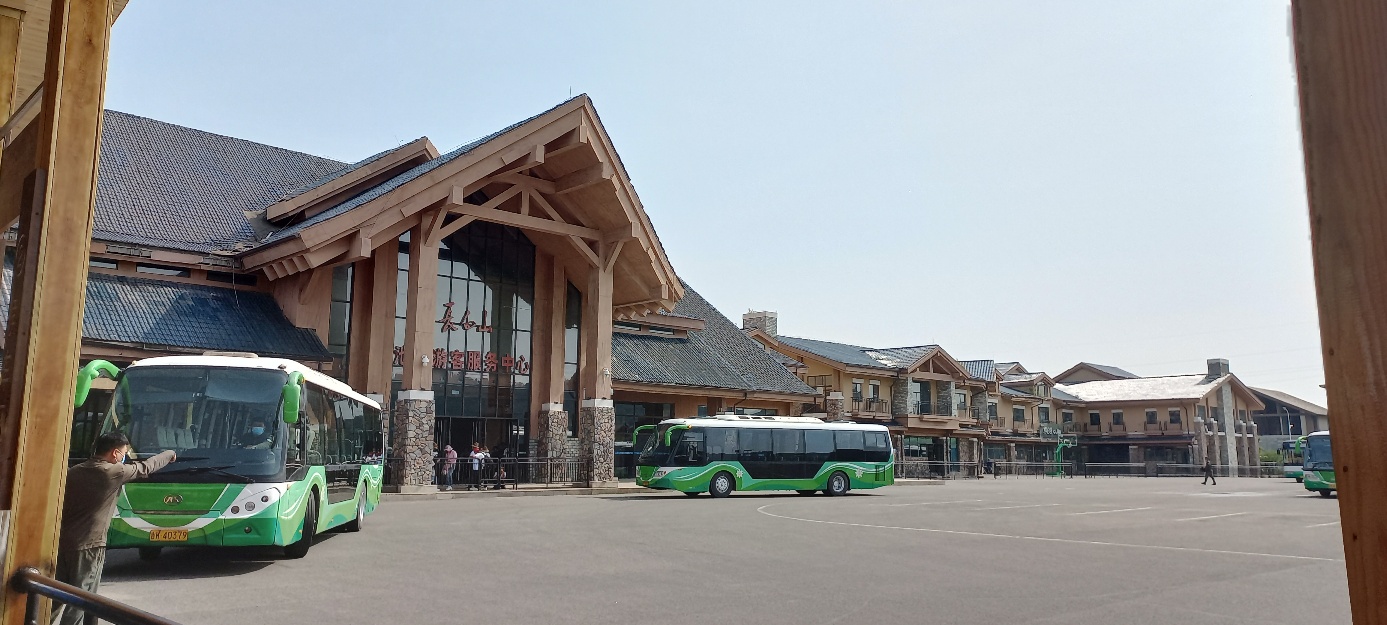 장백산이라 쓰인 건물 안쪽에 백두산 서파로 가는 버스를 탈 수 있는 환승 승강장이 있다.