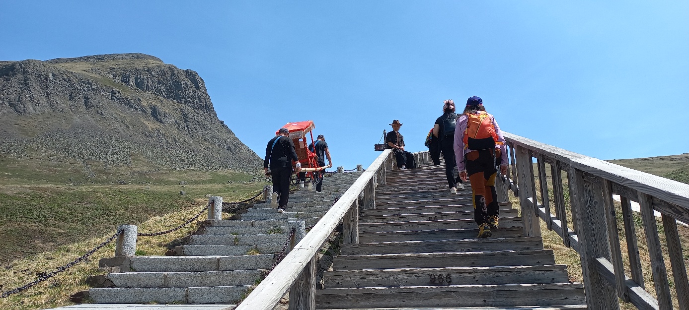 서파 계단 1,442개의 계단 올라 갈때 또는 내려올때 힘들면 저기 가마 타시면 됩니다.