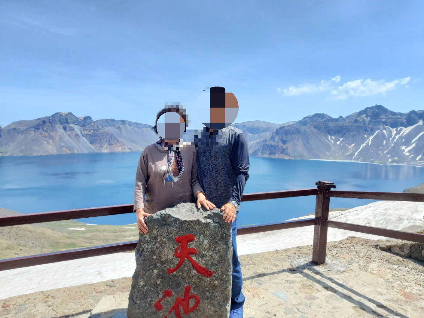 천지 정상석에서도 한 컷 담았습니다.