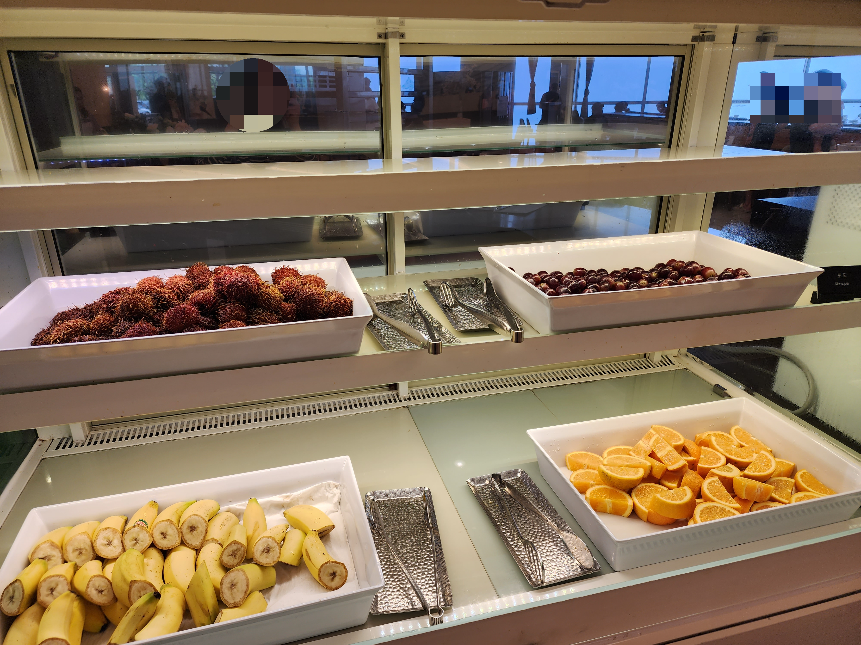 음료, 우유, 커피 모두 있었고요. 시리얼도 있어서 먹었고 과일도 꽤 다양합니다.