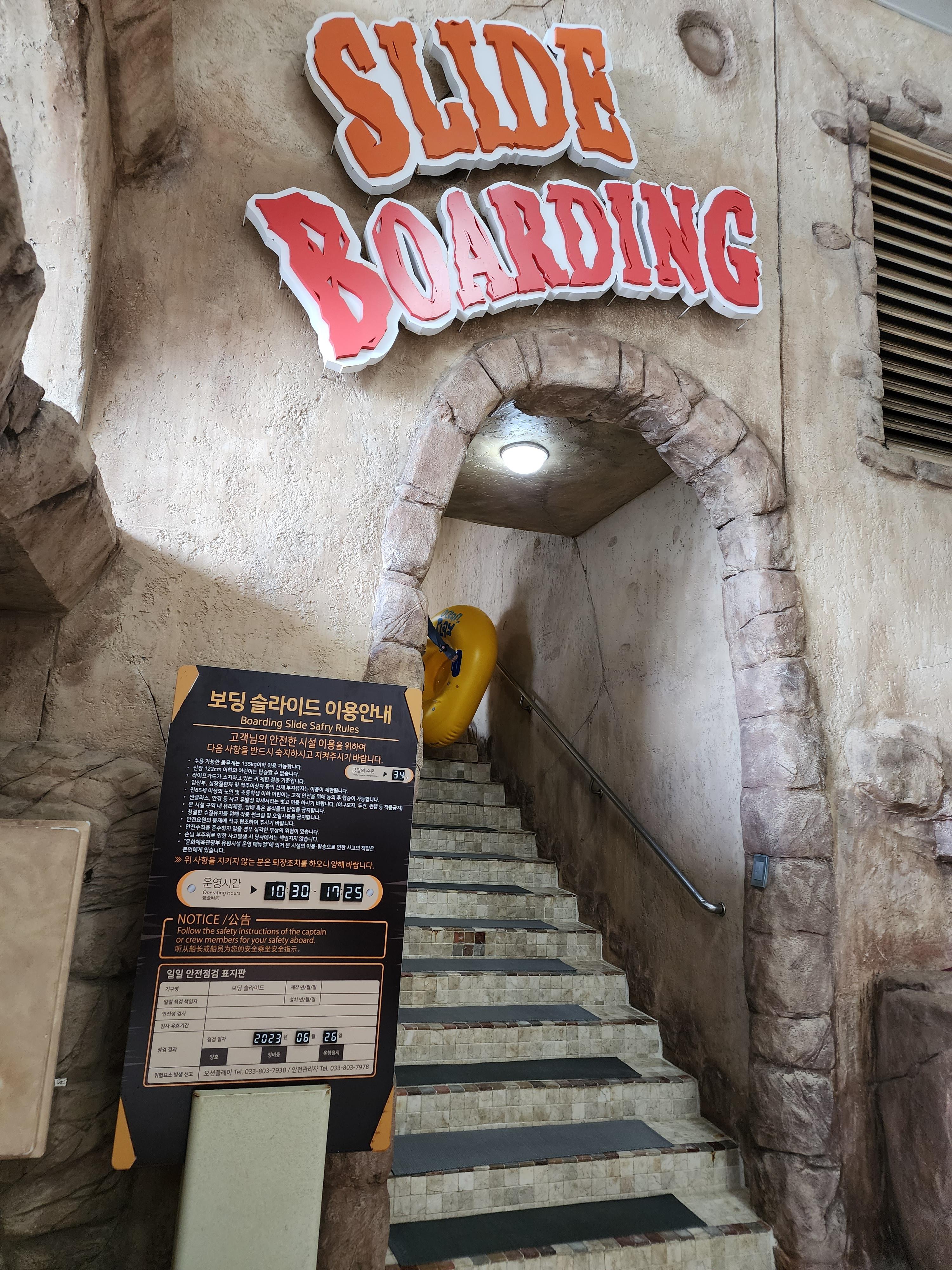이 날은 실내 미끄럼틀만 운영했는데요. 앞에서 보는 것보다 훨씬 길고 구불구불한 미끄럼틀이에요. 엄청 어린 애들도 타는데 키제한만 넘으면 탈 수 있는것 같더라고요. 파도풀 대신에 이거라도 여러번 탔어요!