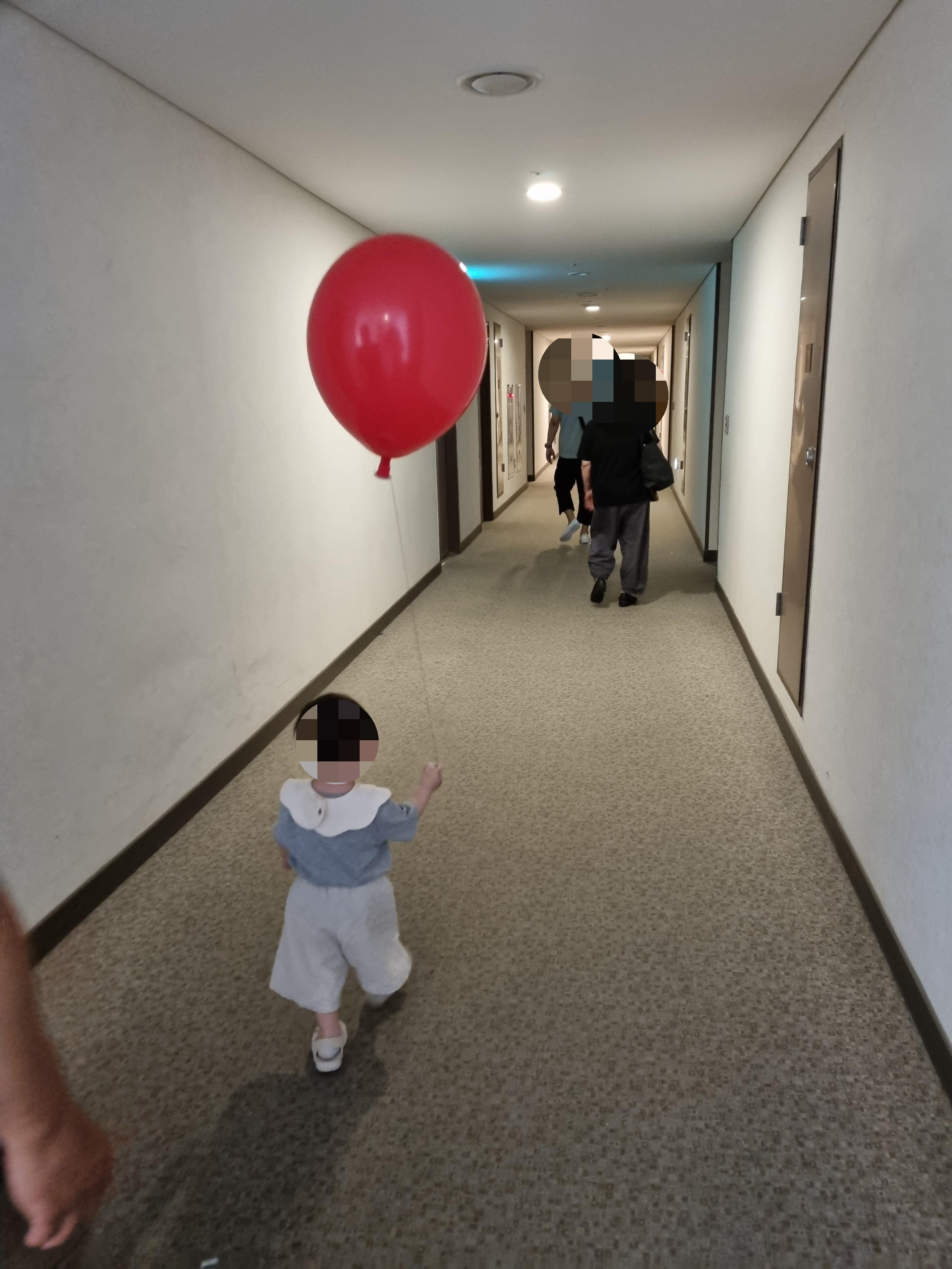 조카가 잠든 김에 객실로 돌아왔는데요. 오는 길에 헬륨풍선을 사주었답니다. 특별히 조카가 좋아하는 빨간색으로 Get~!