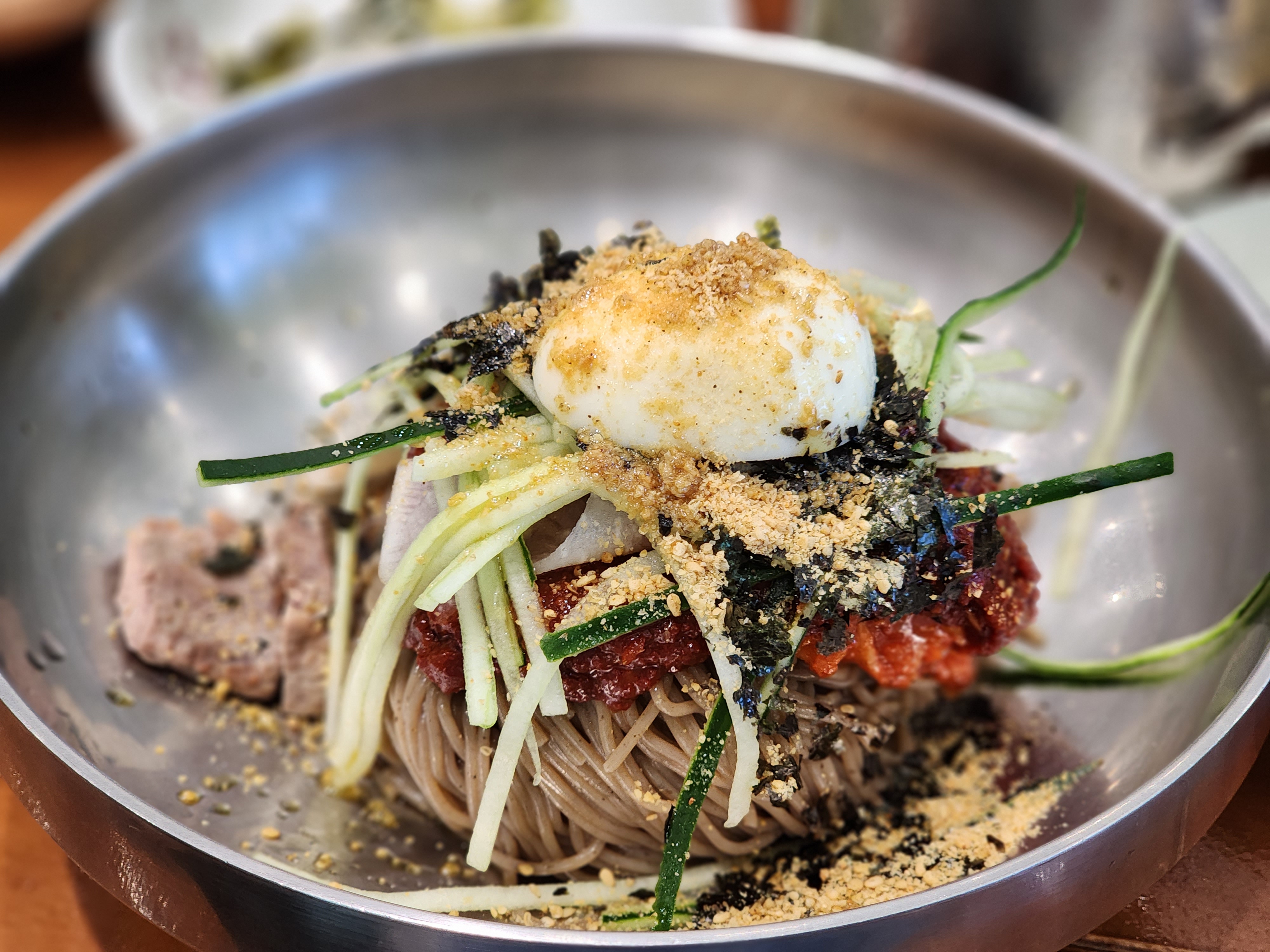 저는 비빔회막국수를 주문했고요. 다른 가족들은 물막국수를 주문했는데요. 둘 다 맛있었어요!