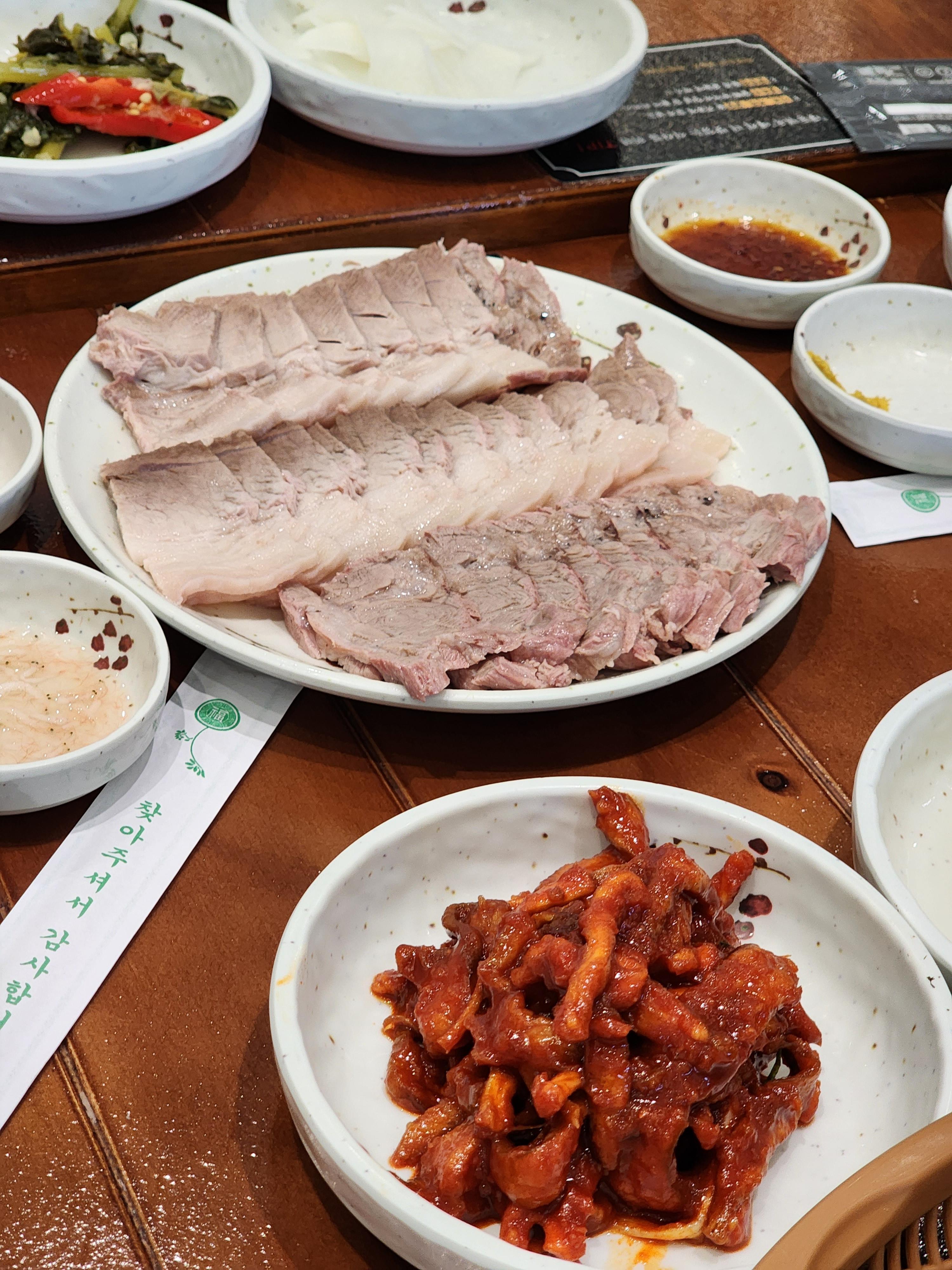 수육도 아기랑 나눠먹기 좋았고요. 같이 나온 가자미회무침도 맛나요.