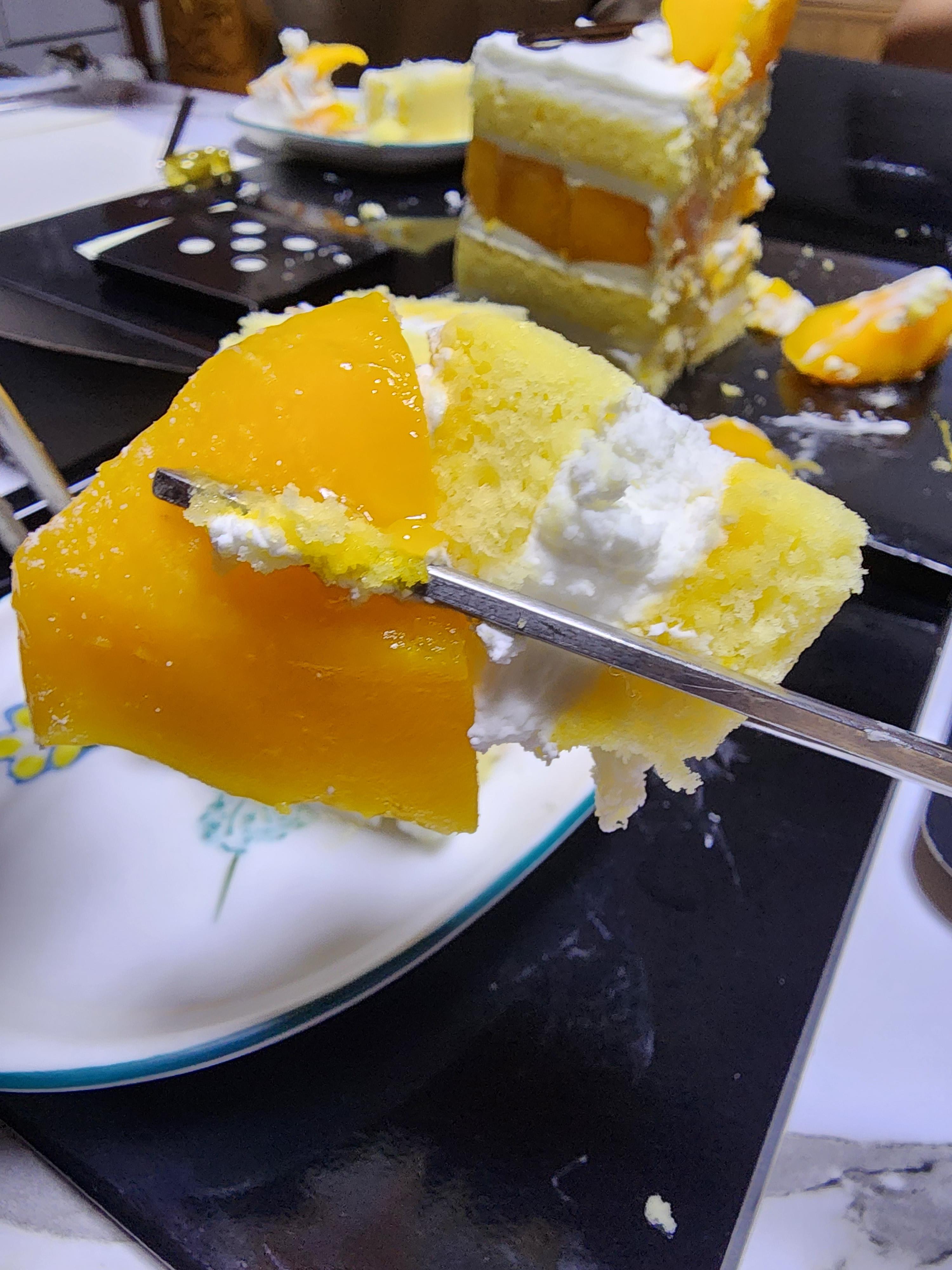 하루정도 냉장고에 뒀다 먹었는데 문제 없었고요. 크림이 너무 달지 않아서 더 좋았던 것 같아요. 망고도 엄청 후숙 잘된 상태로 들어있고요~! 모양이 뭉개지지 않은게 신기해요.. 달지 않은 케이크를 선호하신다면 더 만족하실 것 같고요. 이것보다 살짝 단게 좋으시다면 웨스틴 조선 케이크가 더 입에 맞으실듯..!!
