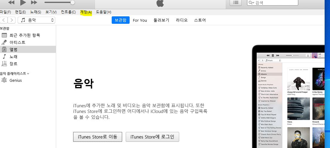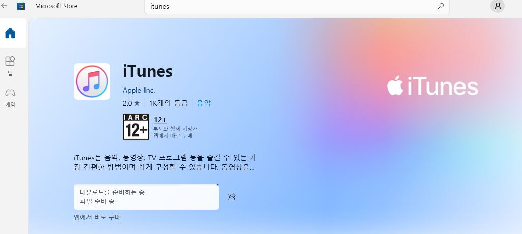 microsoft store에서 itunes를 검색해서 다운 받아주세요