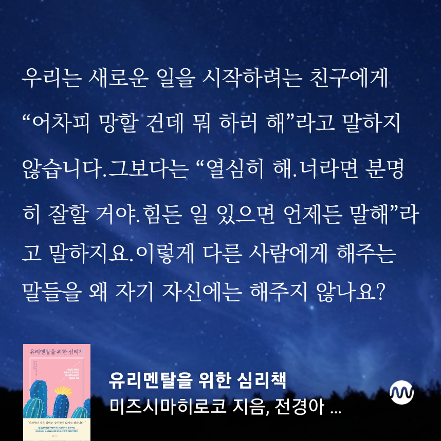 타인에게 하듯이 나에게도 좀 더 따뜻하게 대해줍시다..