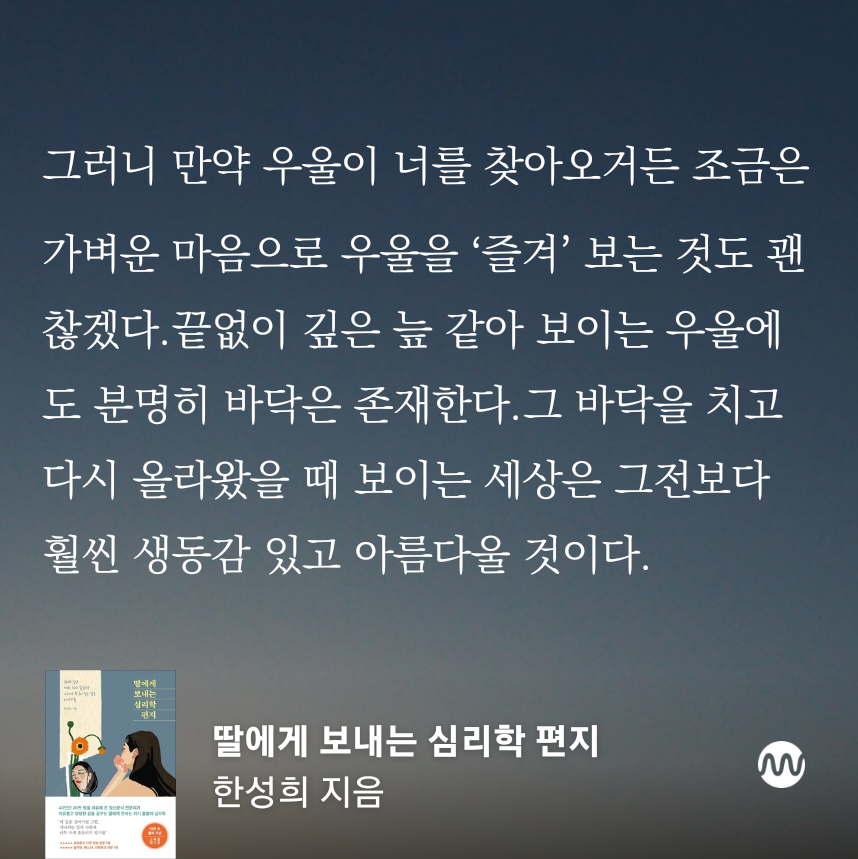오늘도 우울함에 힘들어하시는 분이 있다면, 책을 읽는 것도 의외로 도움되니까요. 한번 읽어보시길 바랍니다!