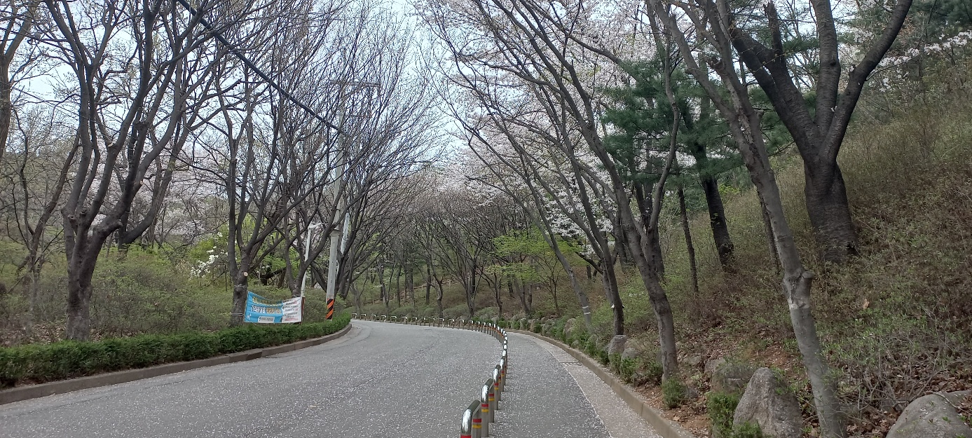 4월 4일 오후 15시 30분 계양산 관리소 쪽 하늘재 진입로의 벚꽃.