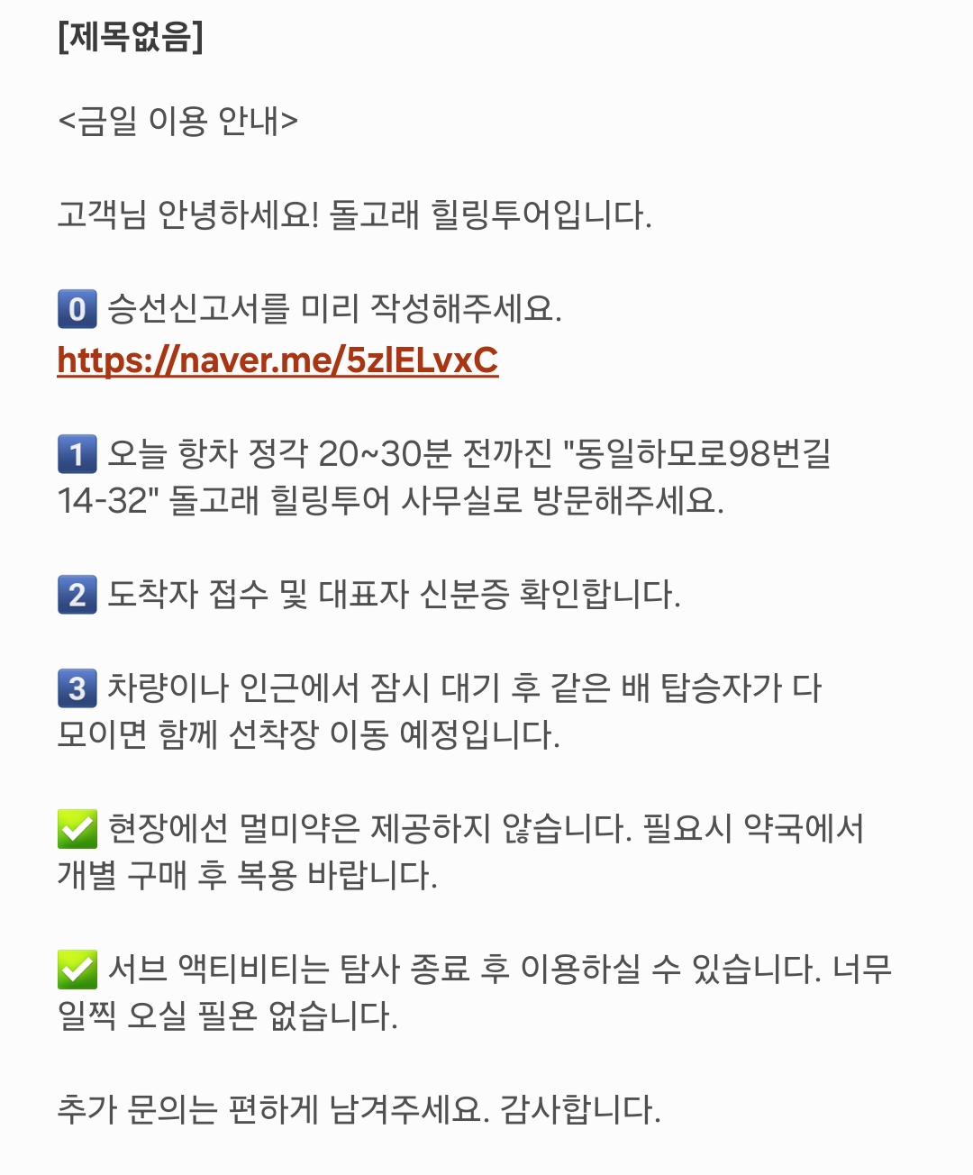 제주도 도착하니 승선신고서 미리 작성해달라고 링크가 와있더라고요. 이런 스마트한 시스템 맘에 듭니다..