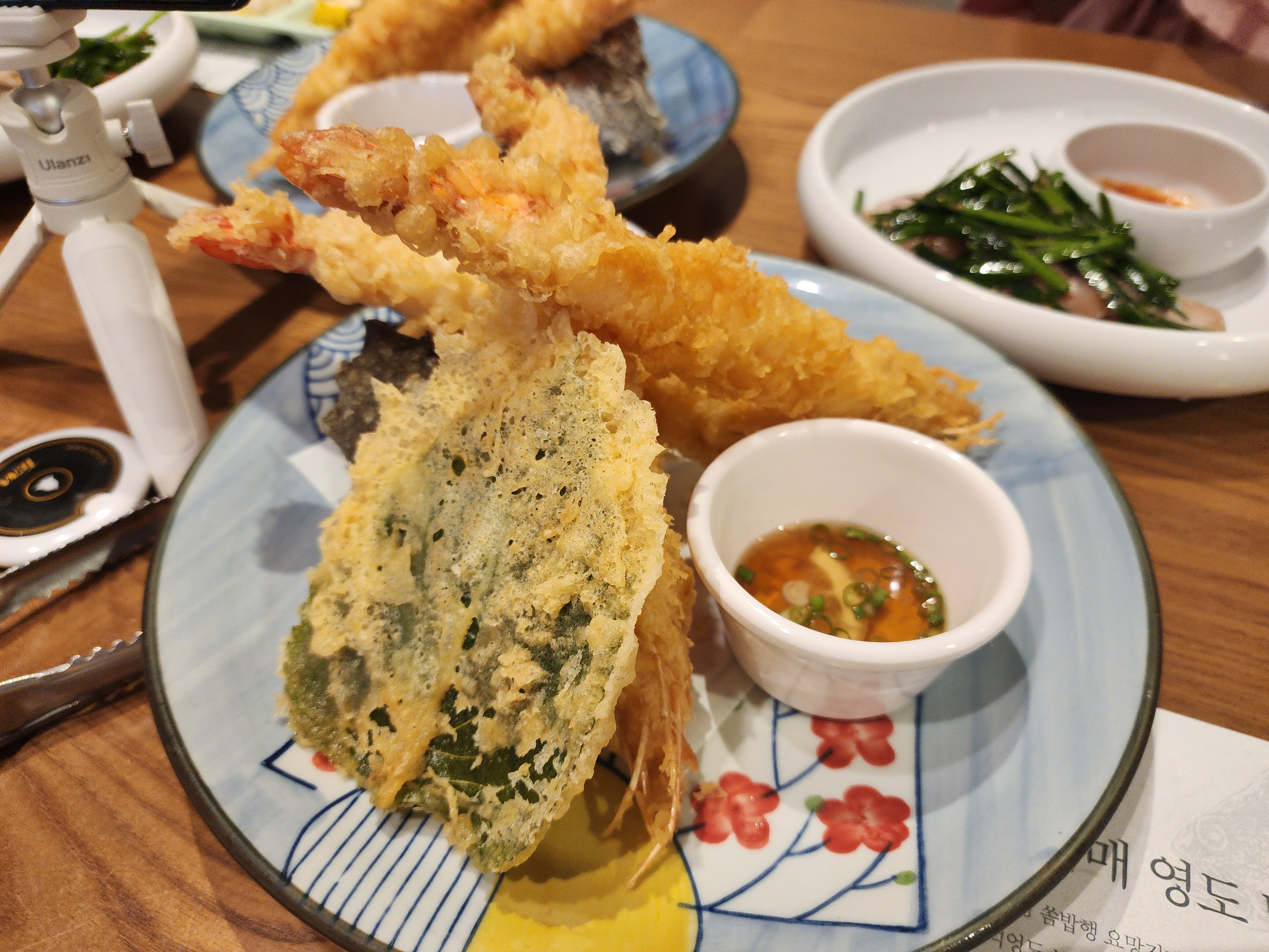 새우튀김과 깻잎튀김. 아주 바삭해서 잘 먹었어요.