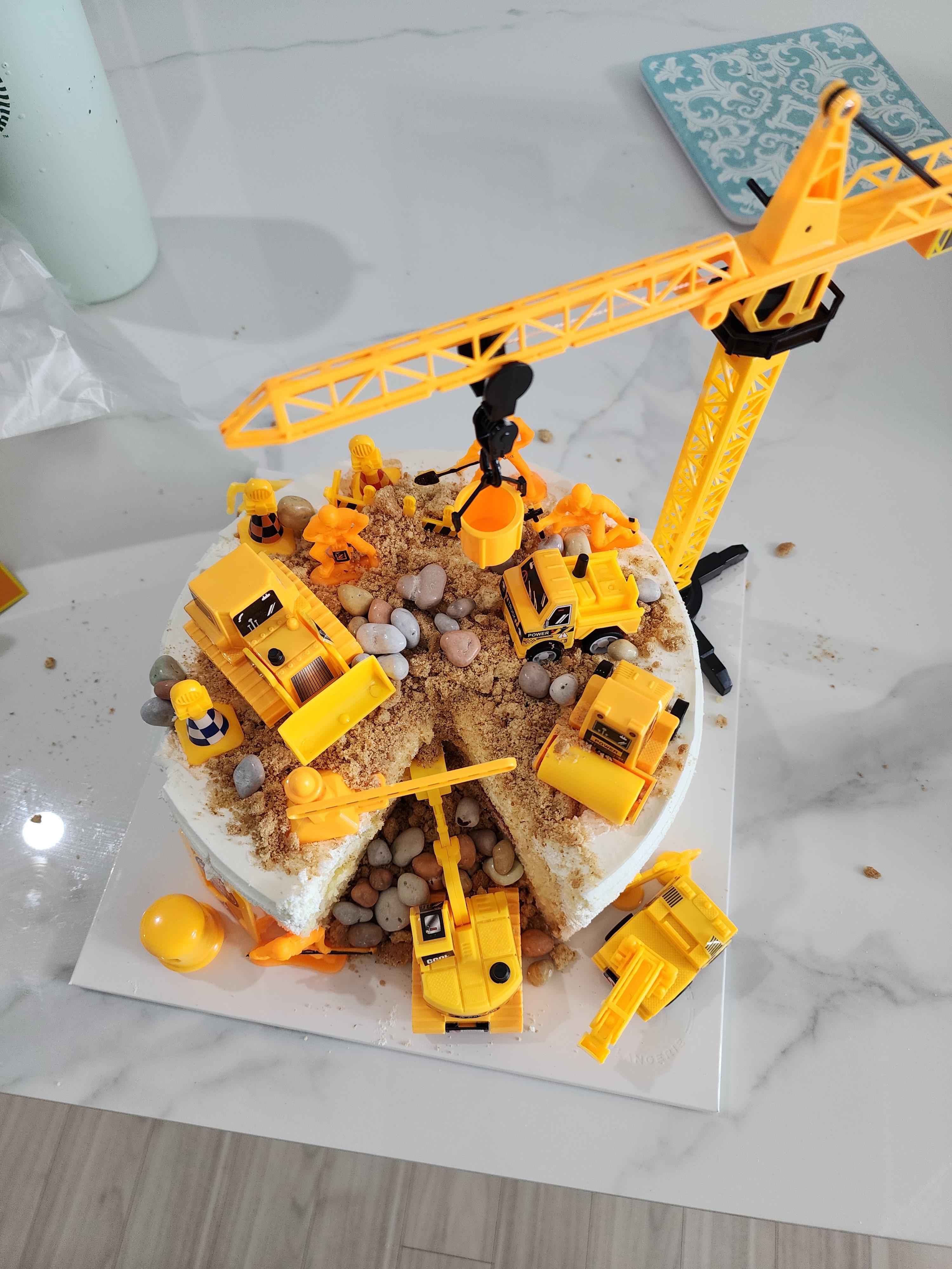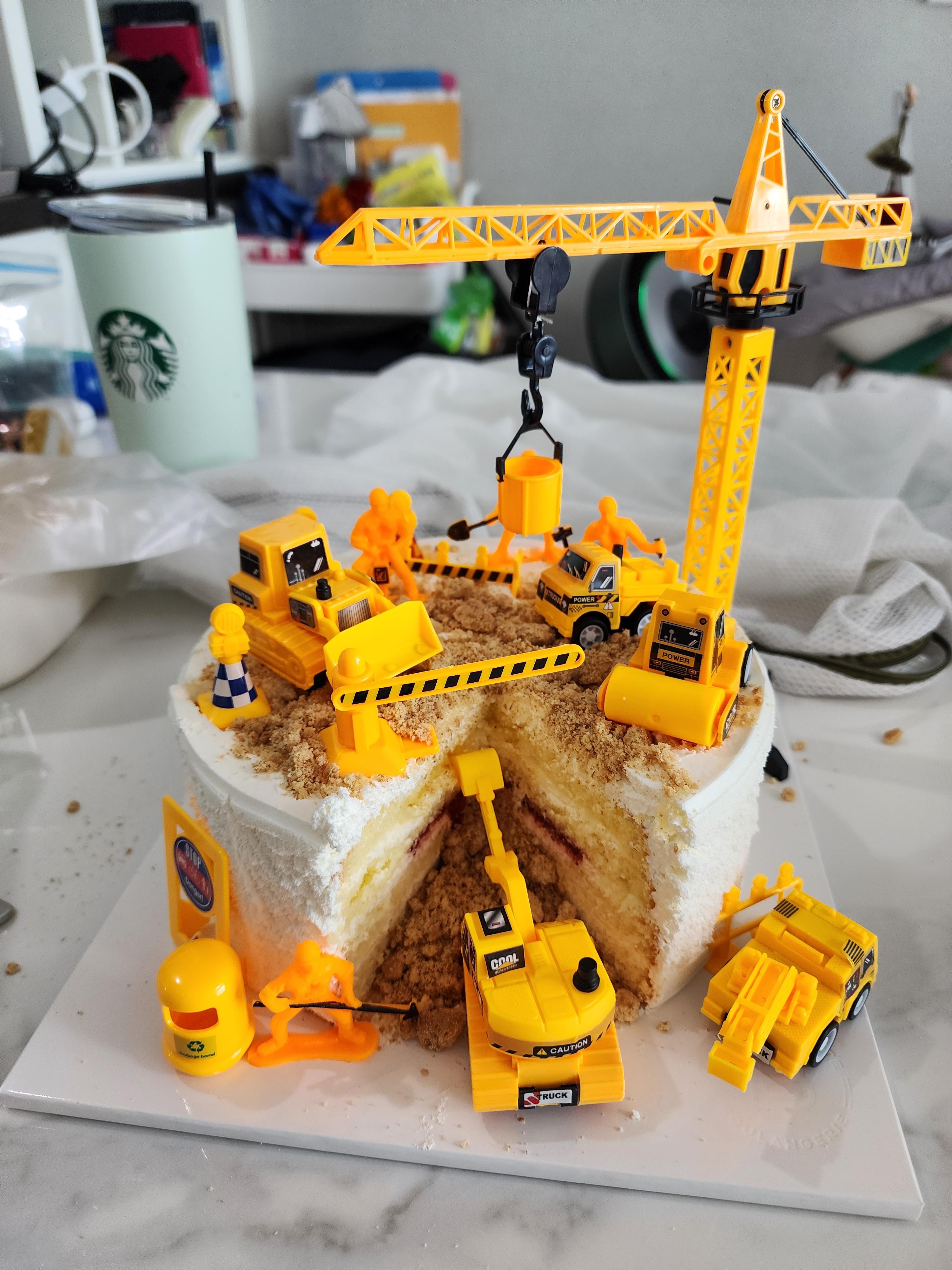 케이크를 테마에 맞게 꾸미려면 필수적으로 중장비 장난감이 필요해요! 아이가 가지고 놀던 장난감이 있으면 그대로 활용하셔도 되고요. (새 거 살 필요 없어요! 😆)