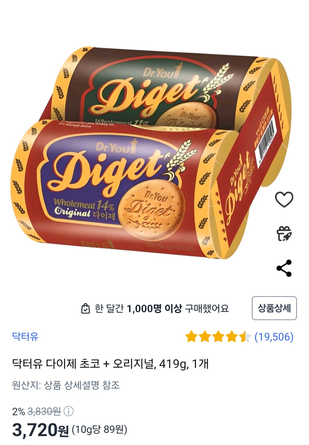 다이제는 곡물맛만 필요해요. 이것도 쿠팡에서.. 초코 맛있으니까 먹으면 됨..