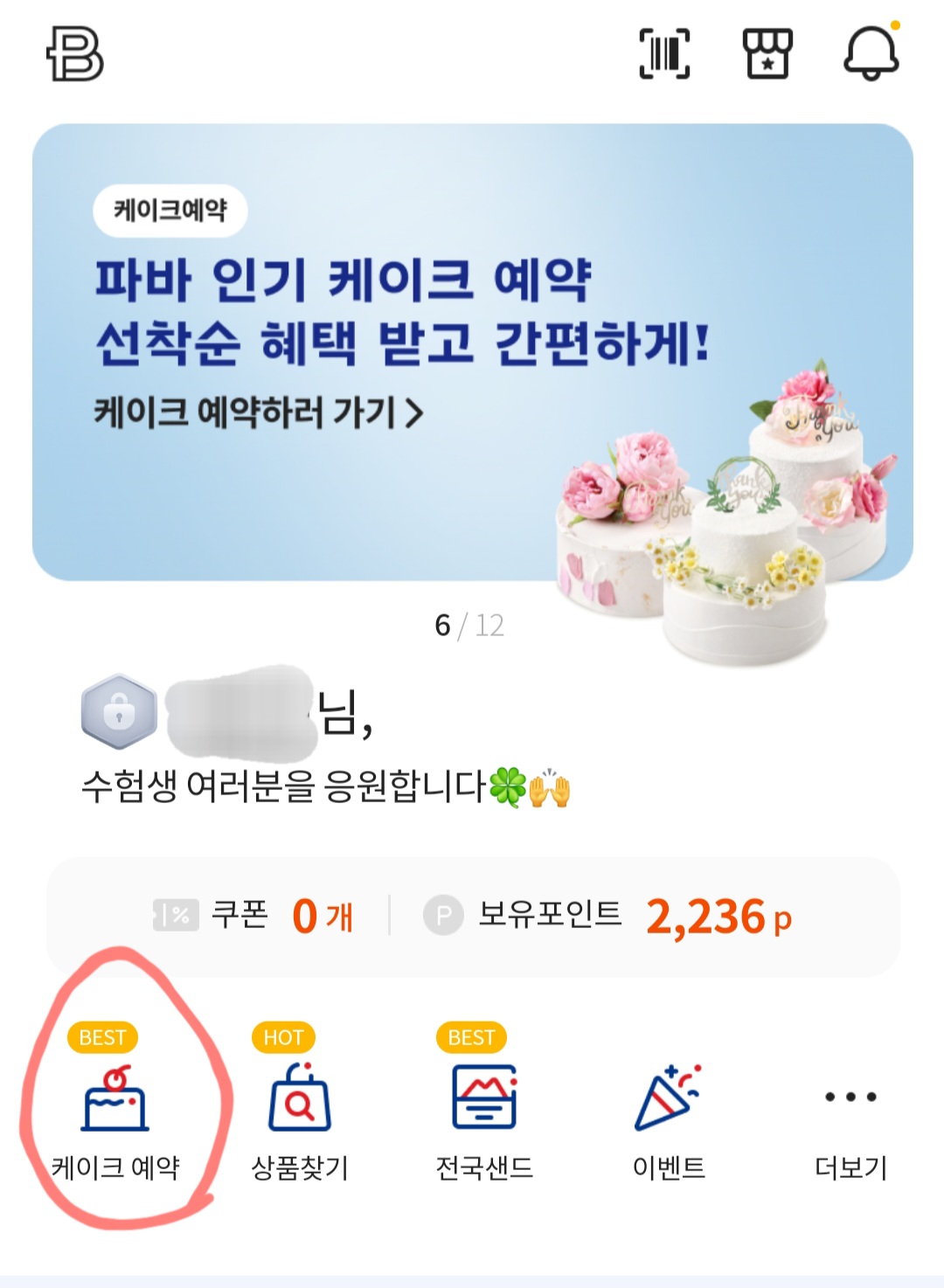 파리바게뜨 앱에서 미리 케이크를 예약해두고요.