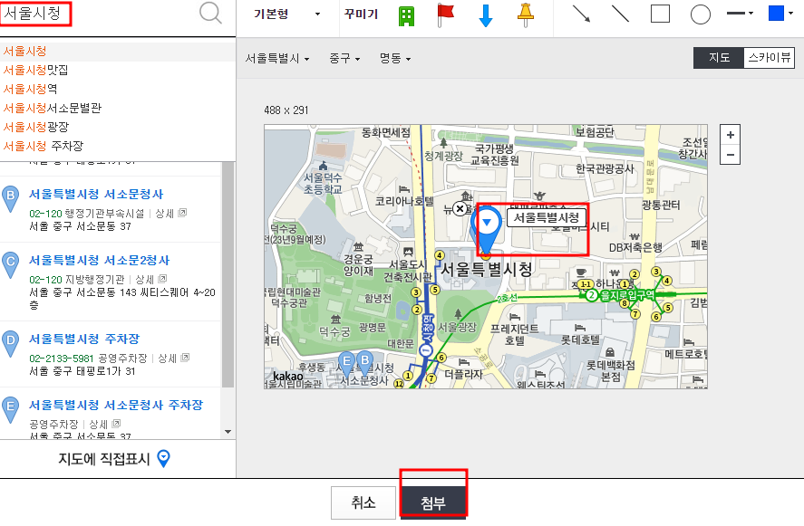 원하는 장소 선택 후 첨부하면 끝이에요.