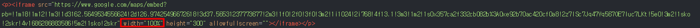이렇게 100%로 고쳐주시면 모바일에서도 깨지지않게 지도를 첨부할 수 있습니다.