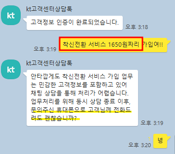 그리고 부가서비스는 고객센터 카톡으로 착신전환 해지한다고 보내두고요!