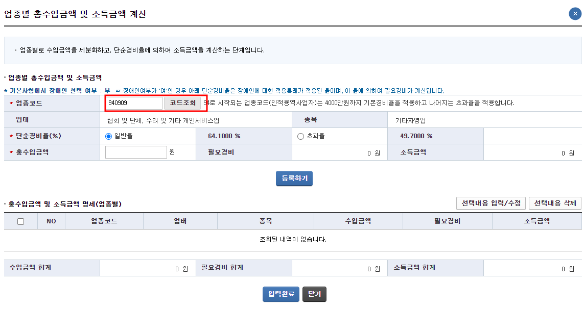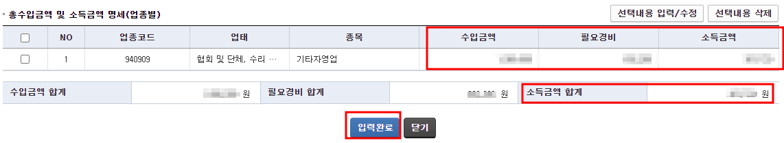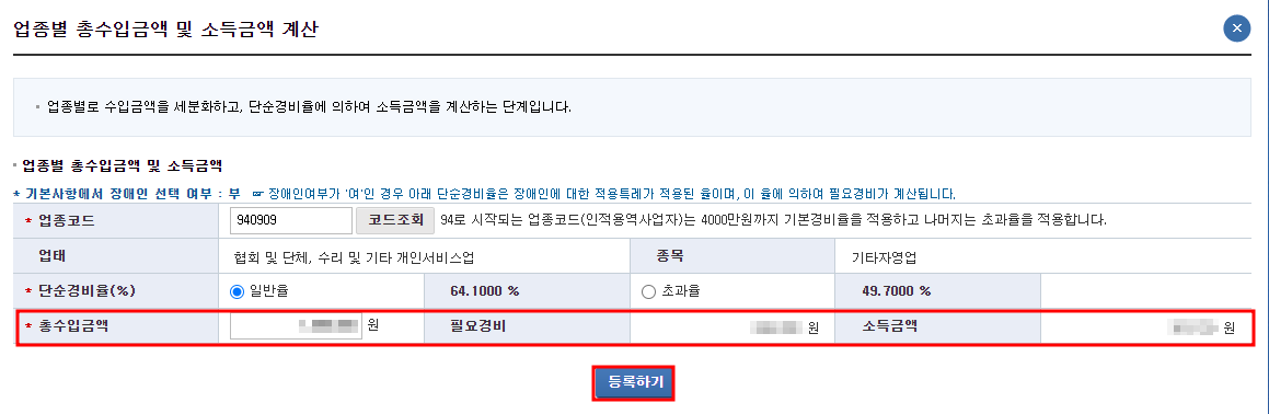 짜잔! 내가 번 소득이 그대로 들어옵니다. 등록하기 버튼을 눌러주세요.