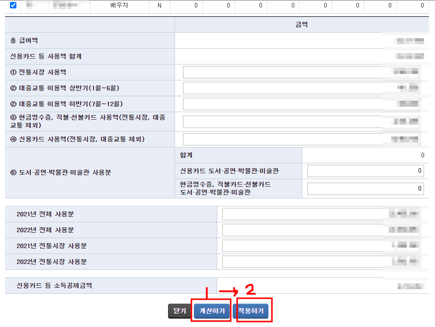 계산하기 버튼을 먼저 누른 후 적용하기 버튼을 누르면 숫자가 잘 들어갑니다.