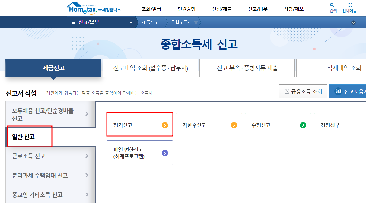 일반신고-정기신고 를 눌러서 들어가봅시다!