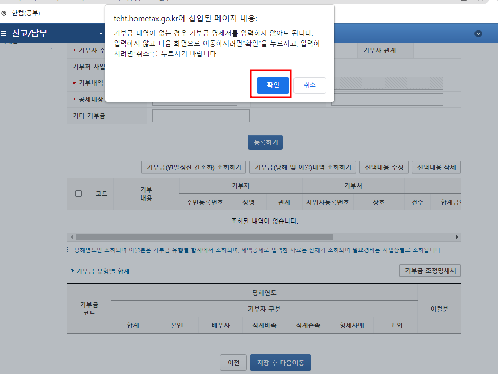 저는 기부금이 없었는데요.. 있으신 분은 취소 눌러서 반영하세요....