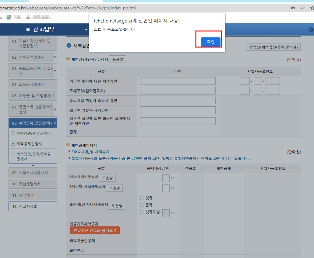 세액공제도 대부분 없어요. 확인 눌러주고요.