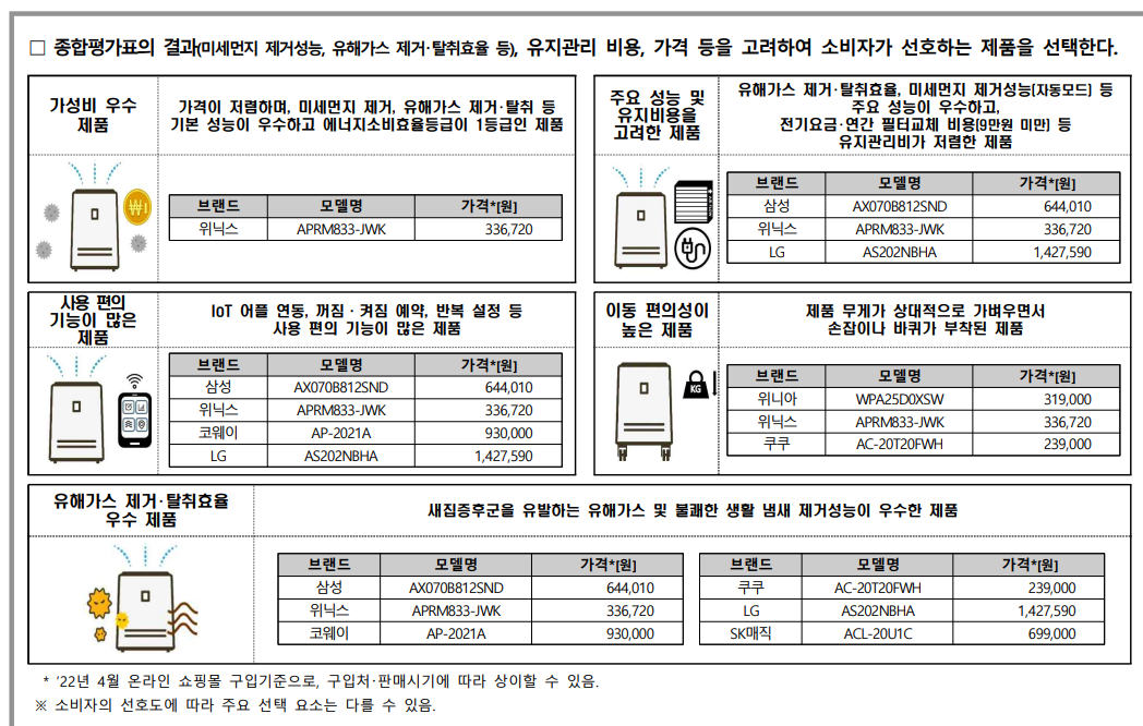 공기청정기 추천제품은 아무거나 추천드린건 아니고요~ 아래 자료를 참고했습니다.