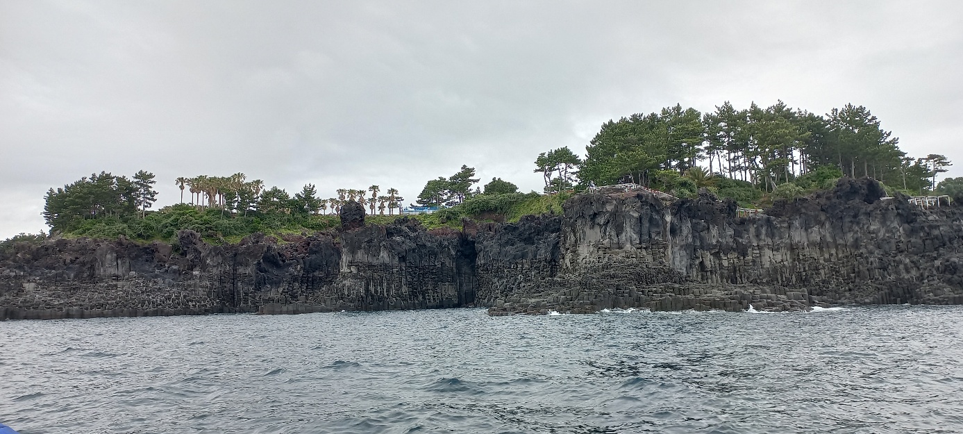 보트에서 바라본 주상절리 두 번째로 탐방한 대포 주상절리 - 여기는 세계적인 지질학적 보물이다 잘 보존해야 하는 천연기념물 제443호이다.