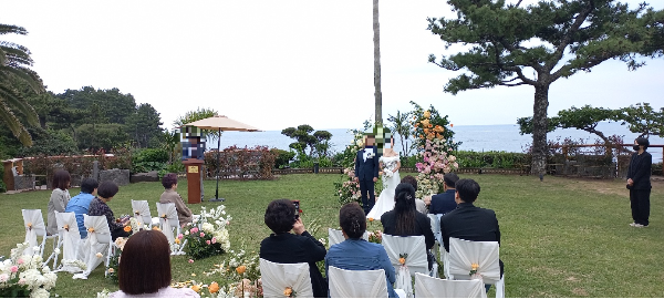야외 결혼식(씨에스호텔) 제주에서 결혼식!!! 아이들이 준비하느라고 참 고생했겠구나~ 생각이 든다. 확 트인 바다처럼 언제나 푸르고 앞날이 순탄대로 로 행복한 삶이 되리라 축원해 주었다.