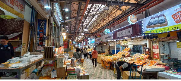 제주동문시장 내부 14시에 차를 반납하고 15시 대한항공으로 김포로 가야 한다.